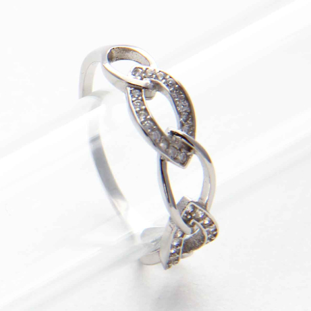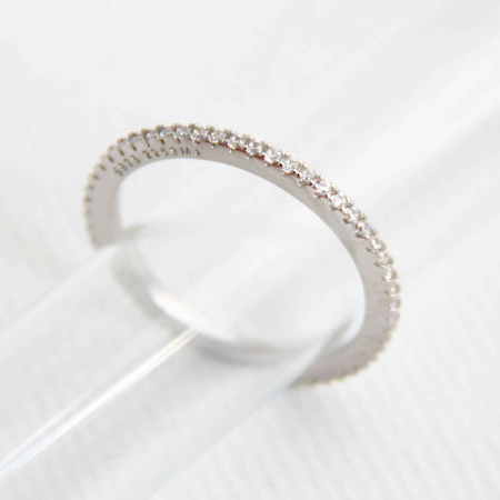 Elegantni srebrni prstan okovan s cirkoni po celi površini.