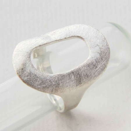 Elegantni srebrni prstan, zelo velike mere, z linijami okovanimi s cirkoni.
