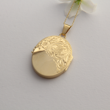 Čudoviti ovalni medaljon z baročno gravuro spredaj.
