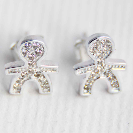 Srebrni uhani v obliki fantka s cirkoni.