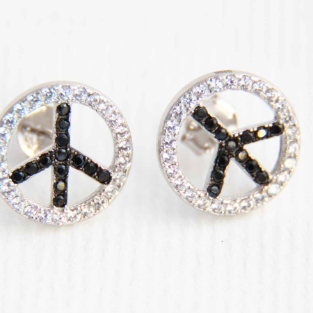 Srebrni uhani v obliki znaka peace s cirkoni.